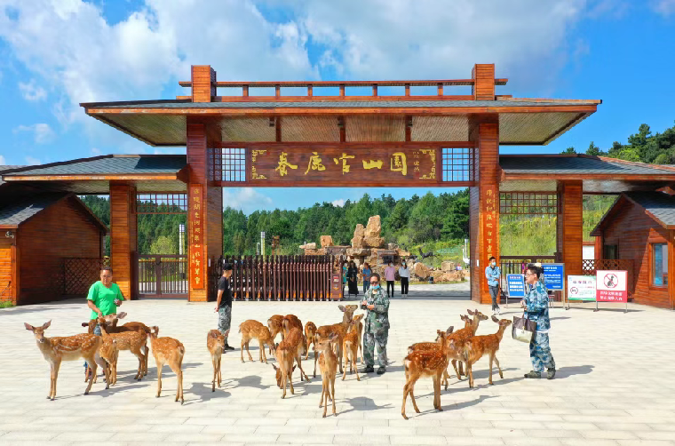 养鹿官山园,占地面积16.2万平方米,圈山1650延长米。主要建设有赏鹿互动广场、游客服务中心、群鹿雕塑和景观小品旱溪、玻璃栈道等设施、景点。园区内设投食区和观景平台,游客可与梅花鹿零距离接触、喂食、拍照,感受亲近梅花鹿的快乐。