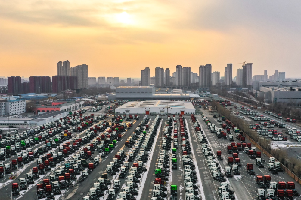 这是1月31日在吉林长春拍摄的一汽解放智慧物流公司整车物流部停车场内即将转运交付的车辆。新华社记者 许畅 摄