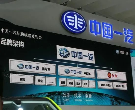 2010年4月23日,一汽全新品牌战略在北京车展发布。在发布会上,中国一汽公布了品牌架构:“中国一汽”为中国第一汽车集团公司企业品牌,下辖“中国一汽”和“红旗”两个伞品牌。“中国一汽”伞品牌涵盖红旗品牌之外的一汽自主乘用车和商用车。其中自主乘用车产品线品牌包括“一汽奔腾”“一汽夏利”等;商用车产品线品牌包括“一汽解放”等。