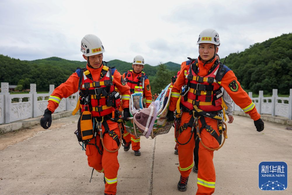 8月6日,吉林市消防救援支队队员穿过断桥。