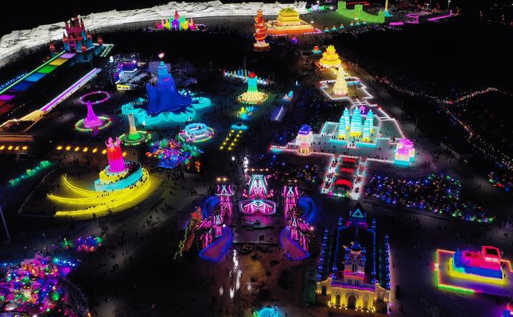 这是12月12日拍摄的长春冰雪新天地一角(无人机照片)。新华社发