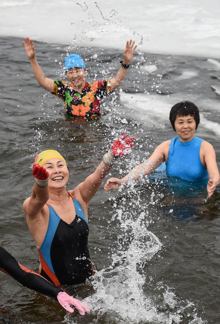 长春市民在冬泳。新华社记者 王昊飞 摄