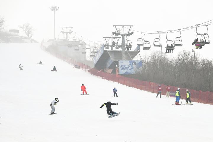 滑雪爱好者在庙香山滑雪场滑雪。新华社记者 许畅 摄