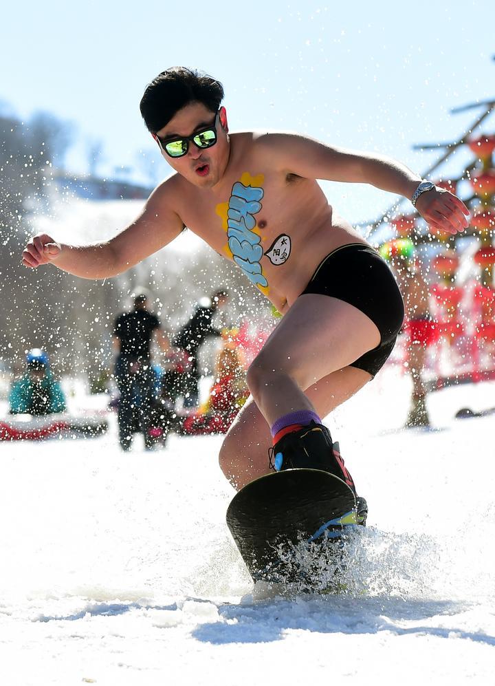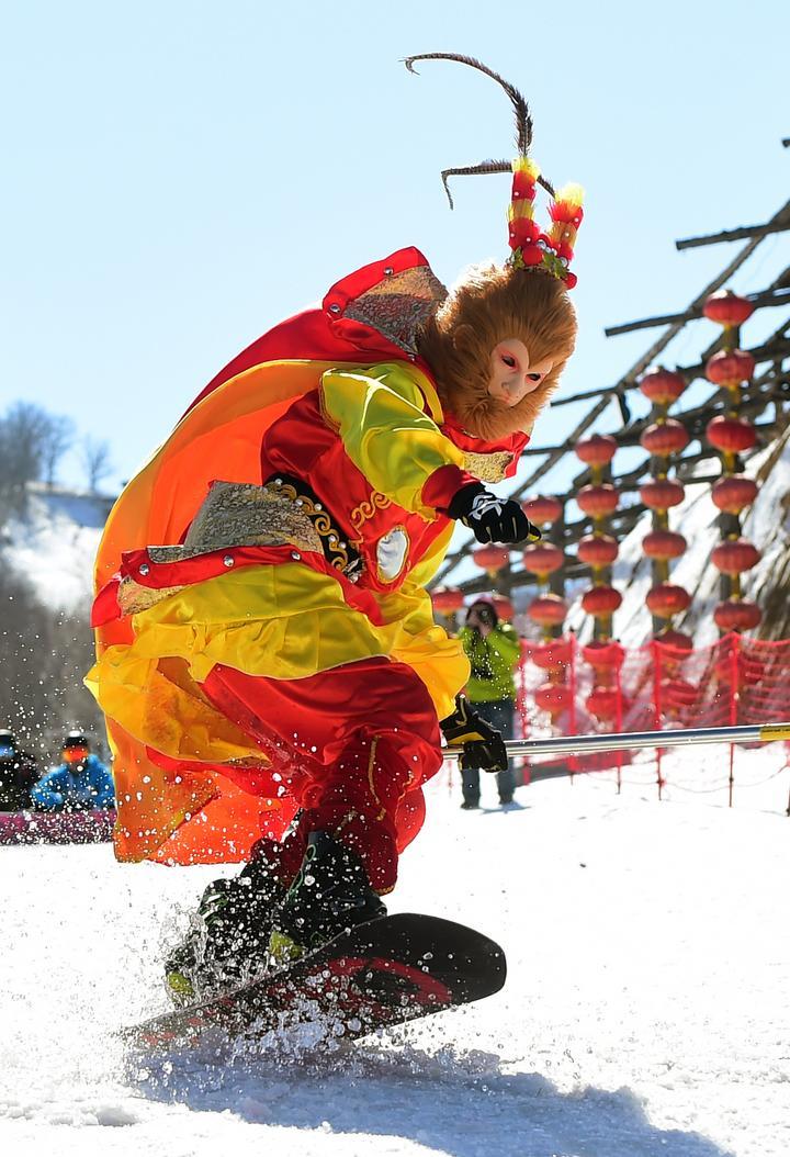 参与者在长春庙香山滑雪场进行“光猪”滑雪。新华社发