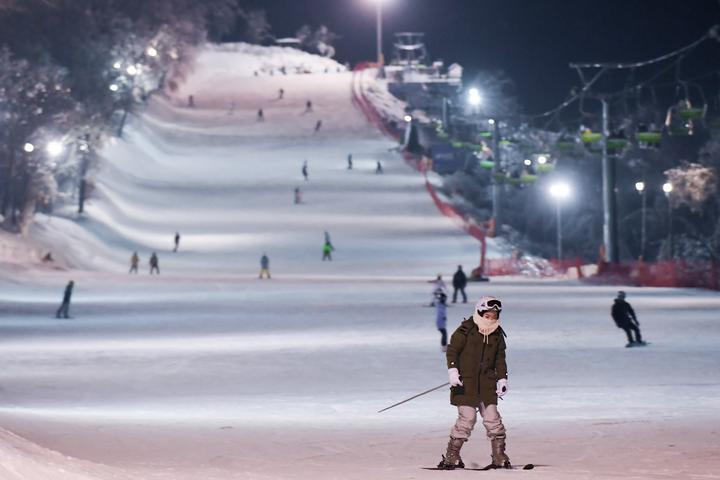 滑雪爱好者在长春庙香山滑雪场体验夜滑。新华社记者 颜麟蕴 摄