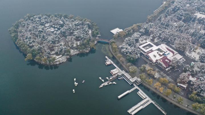 长春市南湖公园雪景(无人机照片)。新华社记者 张楠 摄
