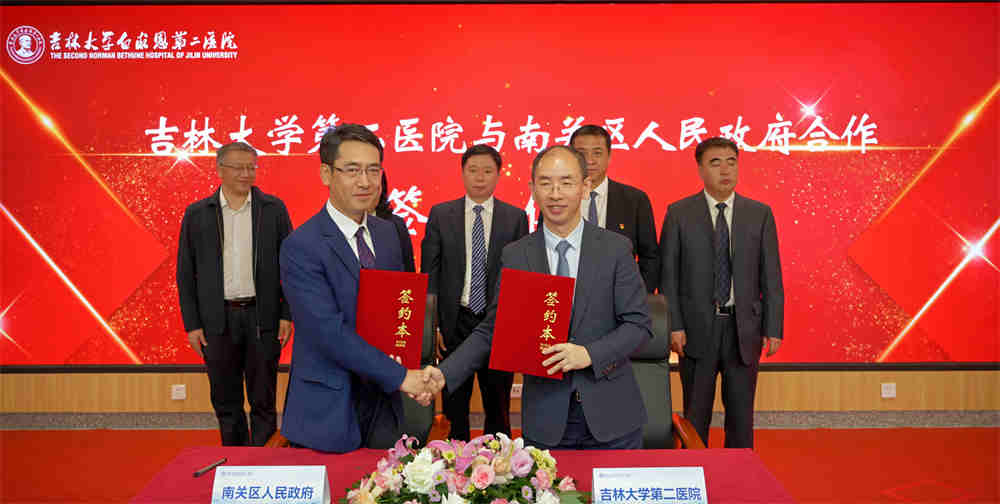 5月24日上午,长春市南关区人民政府与吉林大学第二医院构建紧密型城市医疗集团合作签约暨揭牌仪式在吉大二院(亚泰院区)报告厅举行。长春市副市长赵显、市卫健委主任王维学、南关区委书记鲁月、副区长吴永进、省卫健委副处长张巍、吉林大学第二医院党委书记柳克祥、院长秦彦国出席仪式。