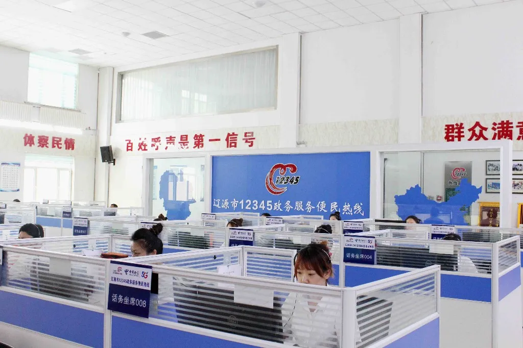 辽源市12345政务服务便民热线大厅,数名话务员正实时接听市民来电