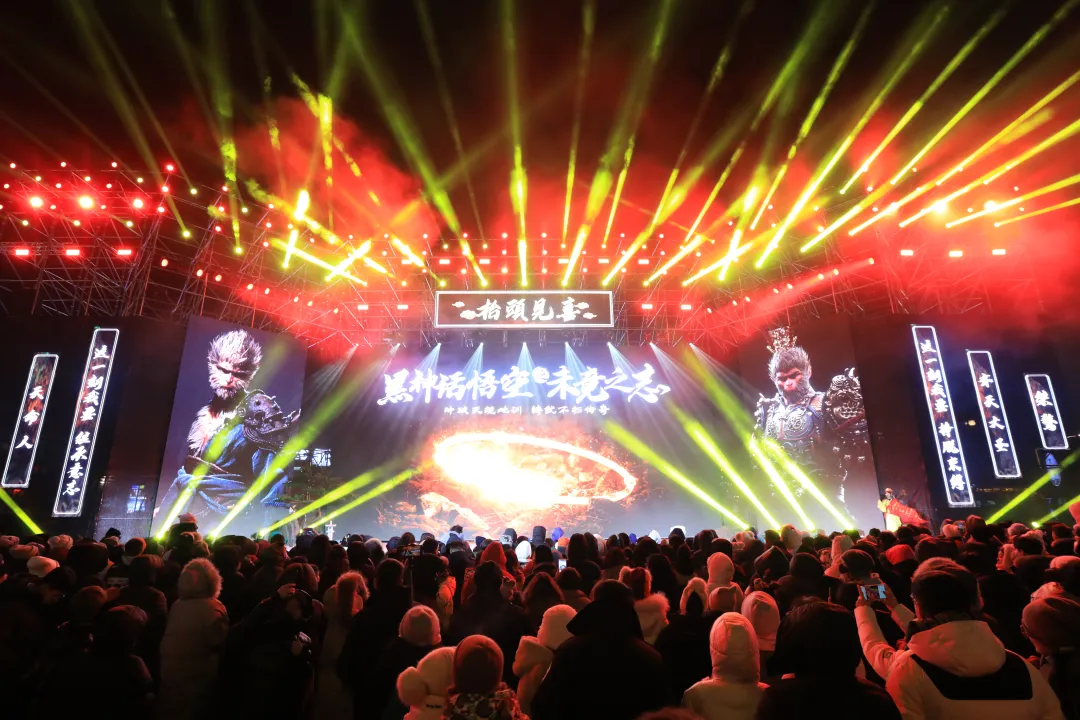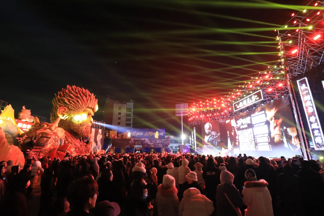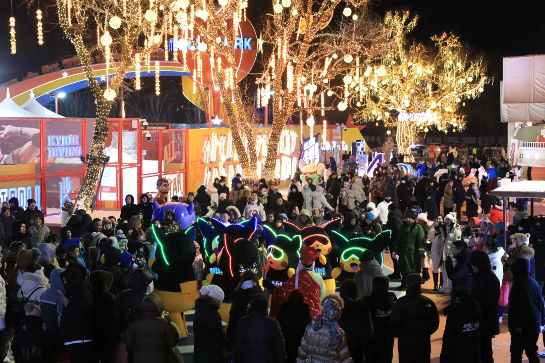 这次冬季娱乐活动,融合考量多维度文旅主体需求。公园里特别设置了六大区域、二次元动漫IP、脆皮打工人专场等众多网红打卡点位。从国潮值拉满的ONE神境区域,到灿若星辰的ONE富源区,再到萌趣横生的ONE趣场区,都在诉说着辽源冬日的浪漫与活力。园区的“人气王”是宽约55米、高约15米的悟空主题巨型彩灯灯组。它由百名工人历时一个月,采用硅胶+彩灯特殊工艺精心制作而成,也是今年公园里新增的最吸睛、最有氛围感的打卡点。