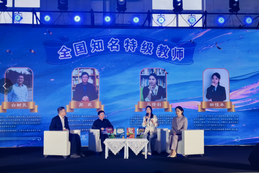 本次新书发布会特别邀请了编创团队代表参加。在作者分享环节,《语文阅读同步拓展训练》《现代文课外阅读》(1-6年级)主编白树民,《现代文课外阅读》(7-9 年级)主编苏武,《英语阅读训练》主编马传莉,以及《现代文课外阅读》(1-6年级)副主编田佳禾依次登台。他们向大家讲述了图书编创背后的故事,分享了图书编创的思路及心路历程,并结合自身教学经验,分享了很多中小学语文与英语的阅读方法和技巧。
