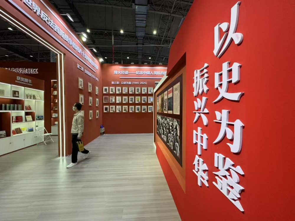 这是第二届东北图书交易博览会的“烽火印迹——纪念中国人民抗日战争暨世界反法西斯战争胜利八十周年期刊史料展”(新华网 邵守志摄)