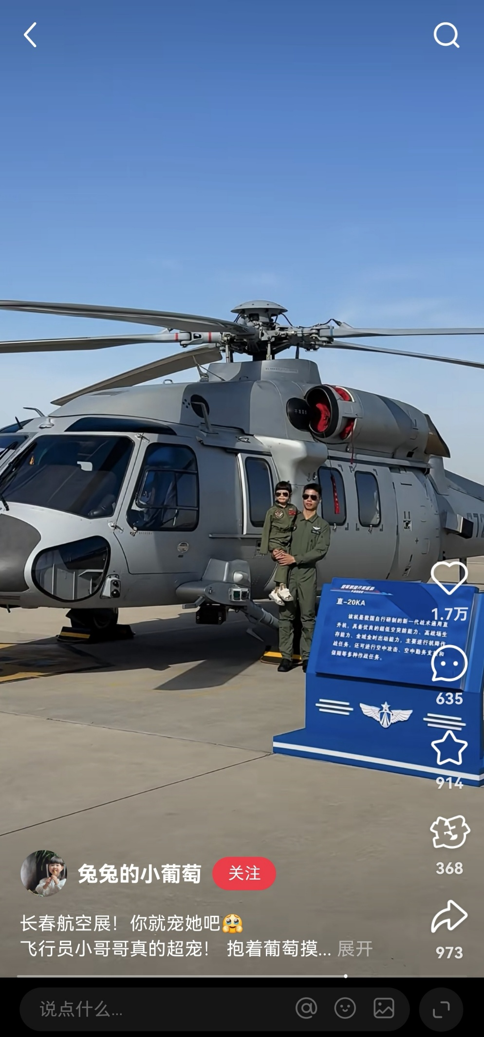 20日,长春航空展上飞行员抱着小朋友拍照的视频得到广泛传播,网友评论喜欢“东北宠孩子的氛围”。(图源网络)