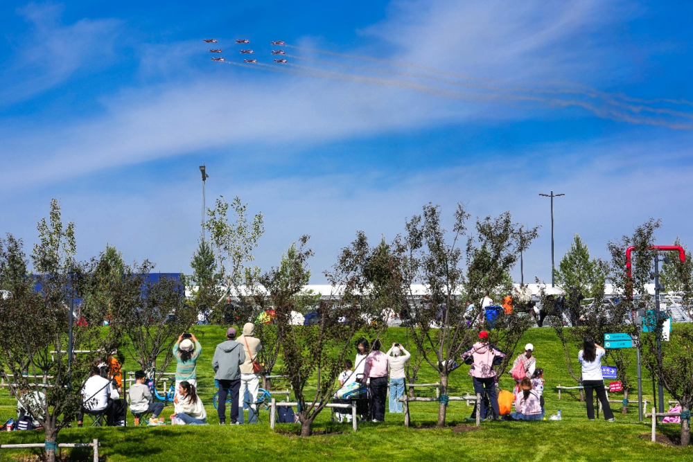 20日,参观者在长春市蓝天公园内观赏飞行表演。新华社记者 许畅 摄