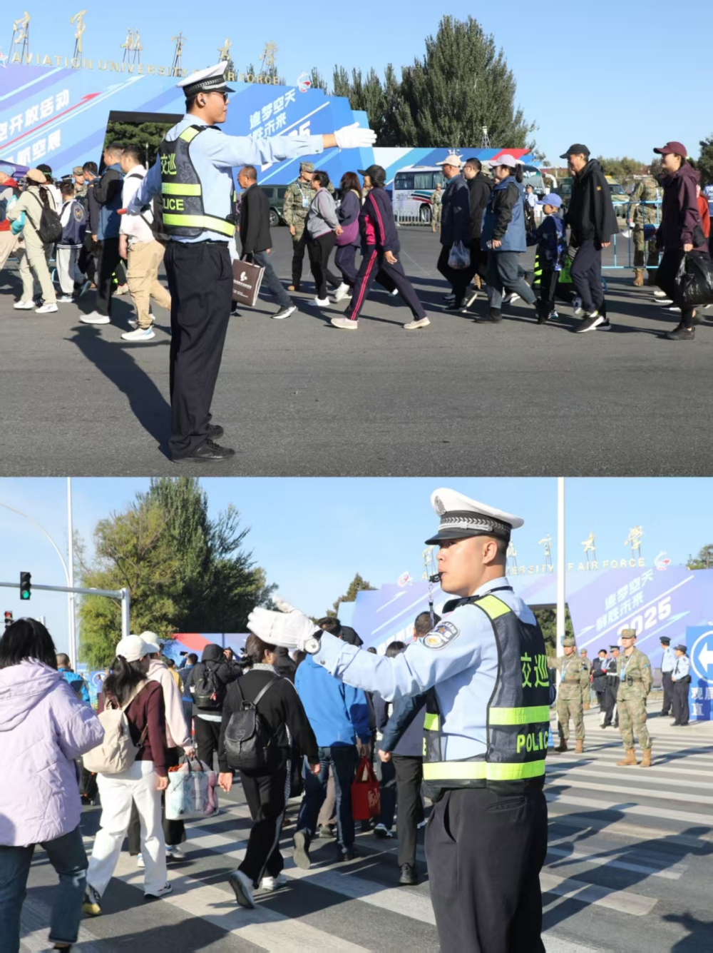 长春市交管支队组织抽调全市交管民辅警1400余人支援航空展,每日早4时30分全部交管警力到岗,路段每50米设置1处固定岗,重点路口部署8至20名警力保障交通运行平稳有序。有观展游客说,不论是市内还是展会现场,有问题找交警,有需要找交警,准没错。