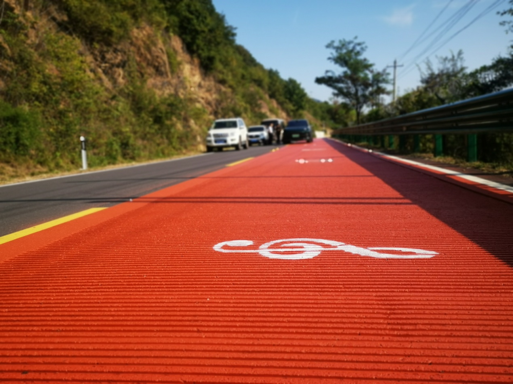 前川大桥完成彩色沥青桥面铺装,提高行车视觉效果,加强桥面防滑