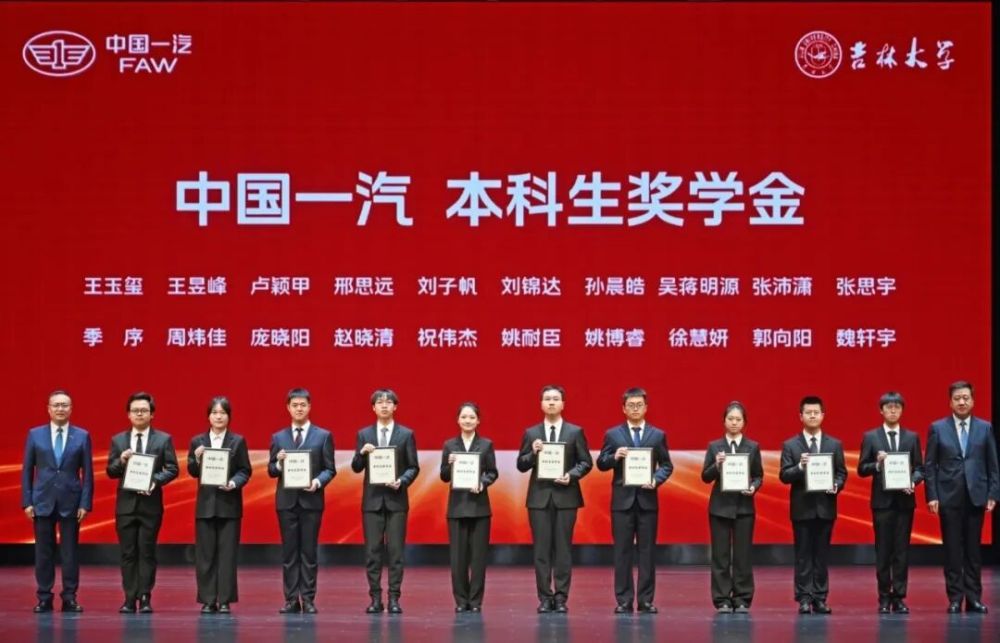 中国一汽与吉林大学同根同源、血脉相连。70余年来,双方结下了深厚的情谊,在人才培养、科技创新等领域取得了丰硕的合作成果。自2021年设立中国一汽奖学金、奖教金以来,校企合作更进一步,在双方同心协力、精诚协作下,各项工作取得显著成效。中国一汽近五年累计招聘吉大学子超2500人,通过共建“红旗学院”、开展“工程硕博士”联合培养等方式培育人才超500人,协同开展的燃料电池、智能驾驶等关键技术攻关取得了阶段性突破,既展现了吉林大学育人兴邦的务实担当,也成为中国一汽人才强企的生动实践。