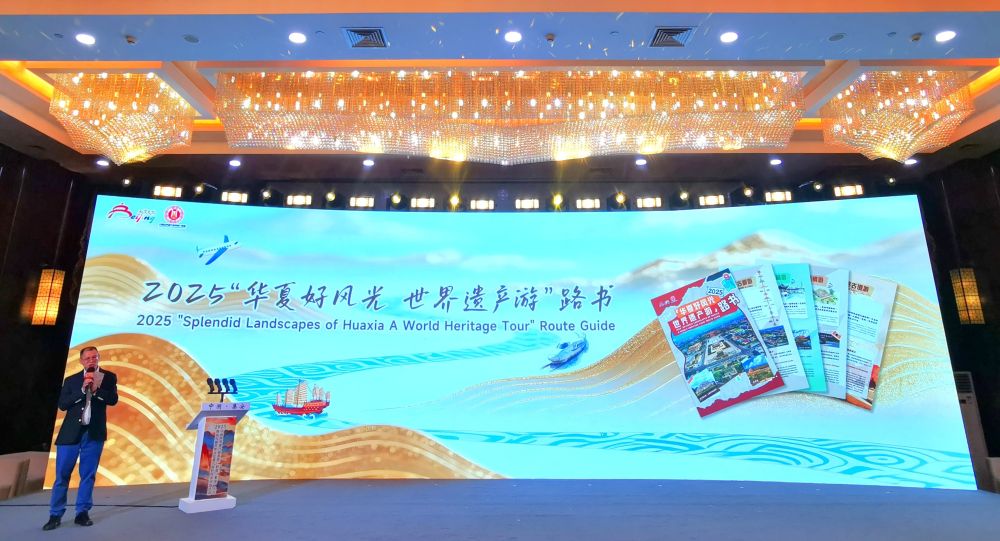 活动现场,中国世界遗产跨区域旅游线路和《华夏好风光 世界遗产游》路书发布。蒋民 摄
