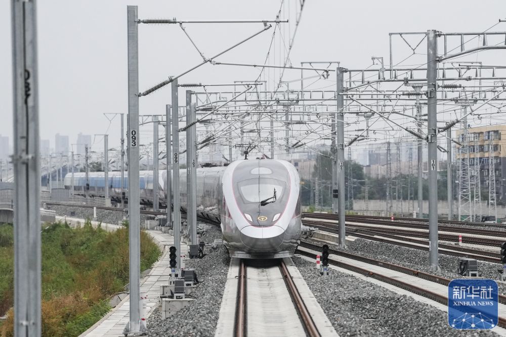 ↑ 9月28日,从抚顺站开往长白山站的G8167次列车驶出抚顺站。新华社记者 潘昱龙 摄