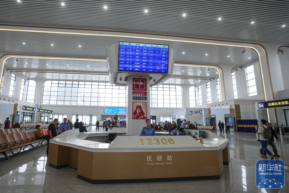 ↑ 9月28日拍摄的抚顺站候车大厅。新华社记者 潘昱龙 摄