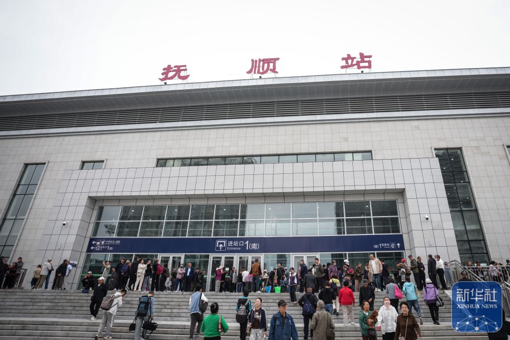 ↑ 9月28日拍摄的抚顺站南入口。新华社记者 潘昱龙 摄