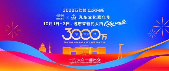 与此同时,一汽-大众将于金秋10月达成第3000万辆整车下线,为长春“汽车城”发展再添佳绩。(中国一汽)