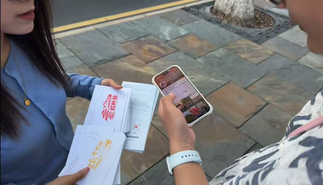 活动现场,蛟河文旅宣传人员向过往市民递上印有蛟河文旅的小扇子、主题明信片与旅游折页宣传单,详细介绍蛟河“一日游”“两日游”精品线路、特色民宿、美食推荐等实用信息,为长春市民规划出行提供清晰指引。