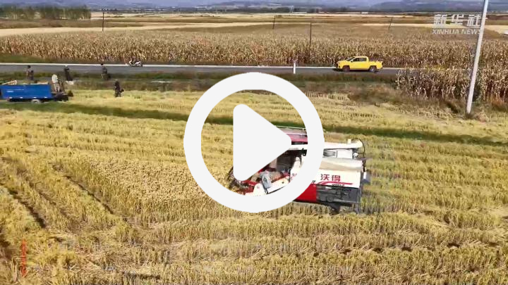 在吉林省延边朝鲜族自治州珲春市敬信镇圈河村,大型收割机在金色的稻田中穿梭,高效收割水稻。为全面提升秋收工作质量,珲春市大力推广秋收机械化作业,指导农民及时做好秋收机具检修维护,保障机具正常运转作业。
