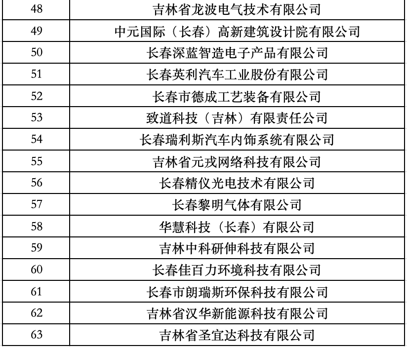 长春新区第七批国家级专精特新“小巨人”企业名单