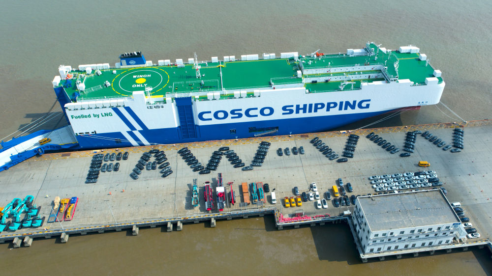 如今,整车出口的货轮鸣笛起航