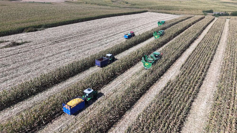 在梨树县凤凰山农机农民专业合作社,农民进行秋收作业。(9月27日摄)(受访者供图)