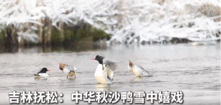 ★近日,科研人员于吉林省抚松县监测并拍摄到中华秋沙鸭在雪天的河水中取食嬉戏的珍贵画面,生动呈现了这一珍稀鸟类的自然习性。详情>>>