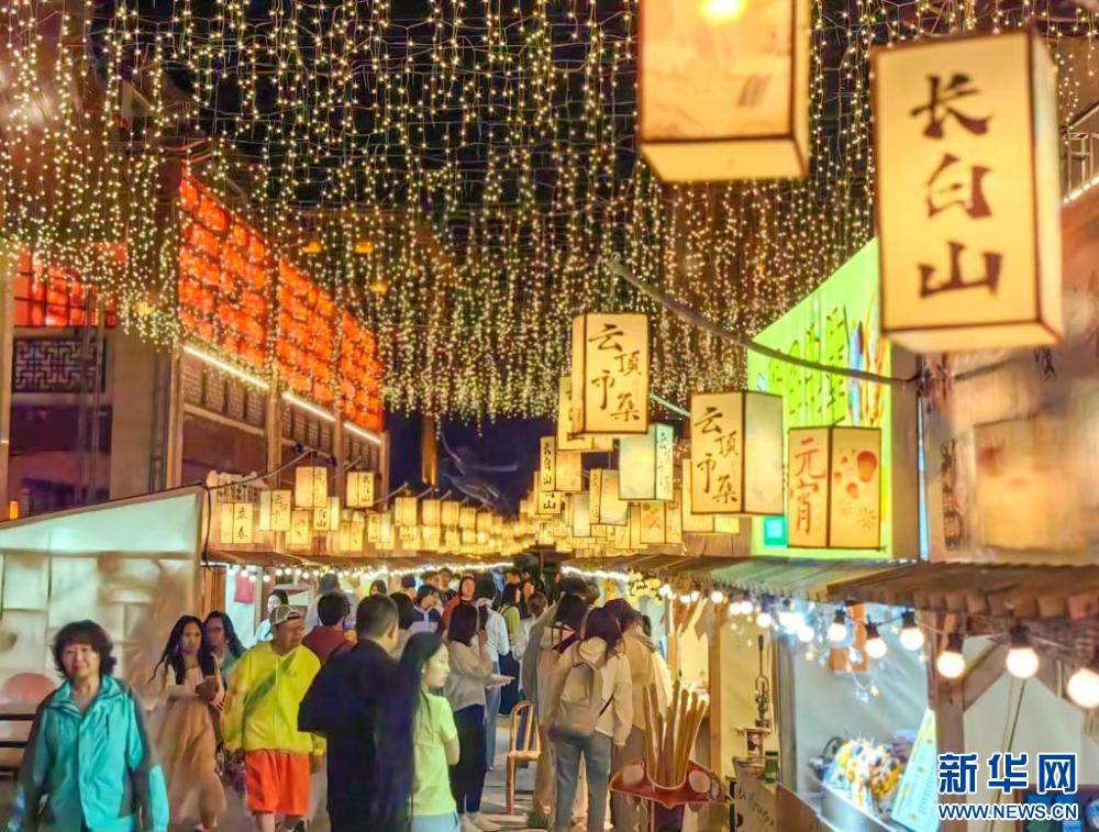 6月17日,游客在二道白河镇的云顶市集游玩。新华社记者王帆 摄