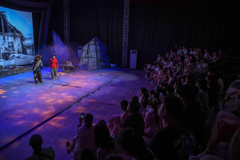 游客围在拟音台旁,拿起道具复刻出电影里的雨声、脚步声,处处洋溢着电影创作的鲜活气息。时而发起的《上甘岭》“快闪演出”,会让游客不自觉地跟着哼唱:“一条大河波浪宽……”
