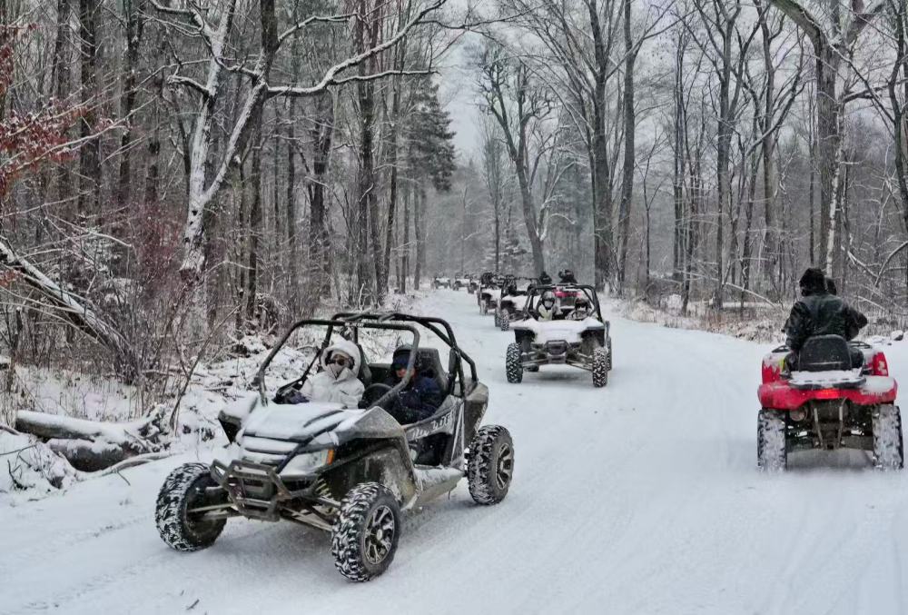 11月27日,游客们在头山村体验雪地摩托项目。新华社发