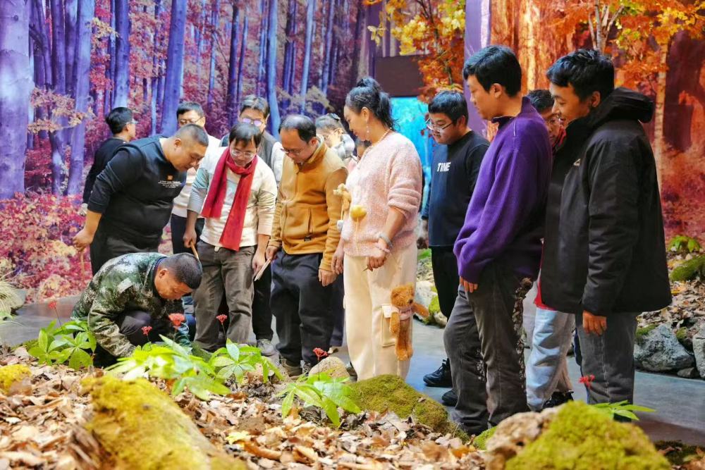 12月12日,游客们在村民带领下体验室内挖人参项目。新华社发