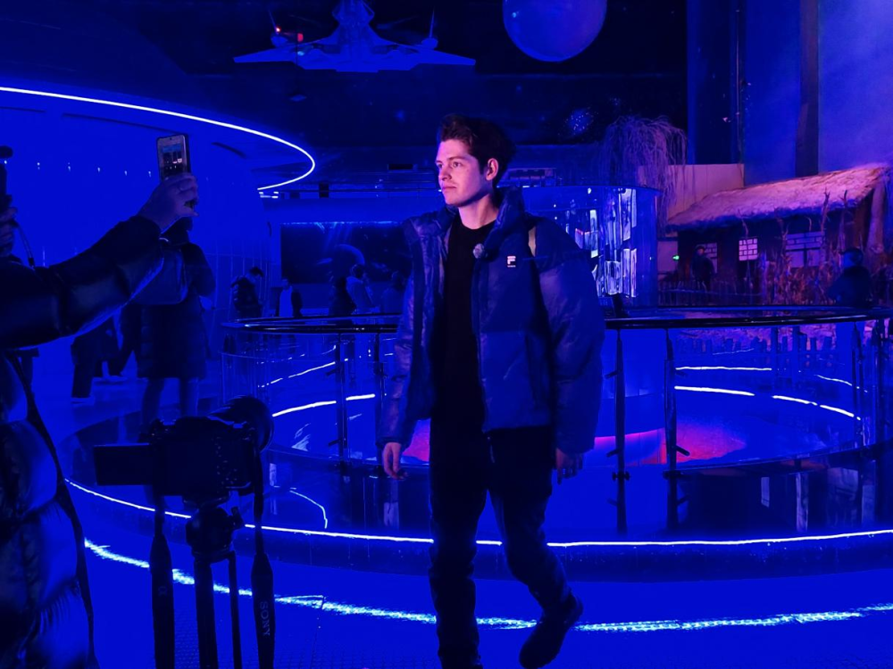 步入展厅,深邃的蓝色灯光将众人带入宇宙空间般的氛围。在陈列着数十块大小不一陨石碎片的展柜前,多名外媒记者调整着角度,用镜头捕捉这些“天外来客”在特制展柜中呈现的独特质感与形态。