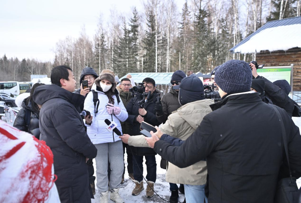 12月20日,由吉林省文化和旅游厅主办的“Hello冰雪Go吉林”国际媒体采风活动一行走进长白山池北区,在长白山聚龙火山石林体验雪谷穿越,感受原始森林的野趣与诗意,沉浸式体验长白山·金1172情景式金代主题演艺城,体验文旅消费新场景、新业态。