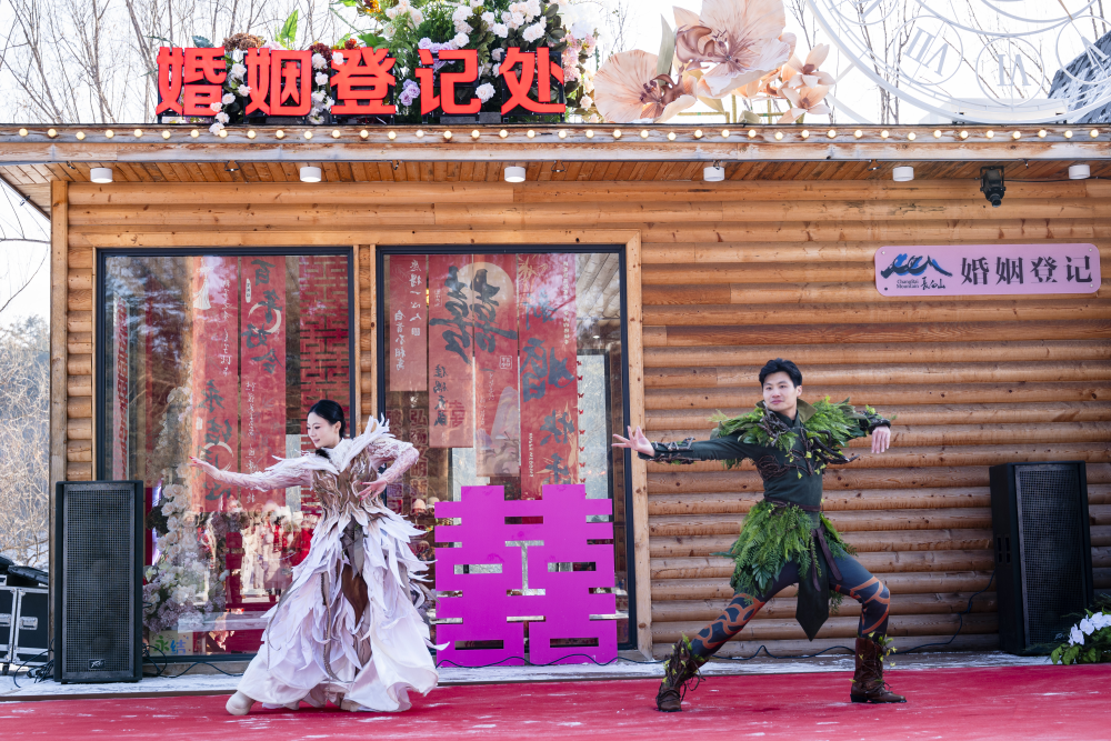 在吉林长白山,冰天雪地藏着几分浪漫。依托婚姻登记“全国通办”政策,建在松林间的长白山美人松爱情森林婚姻登记处,面向全国情侣提供婚姻登记服务。在此登记的新人可享受长白山景区免门票、“长相守信物”定制等专属权益,实现“登记+度假”一站式服务,进一步拓展文旅消费场景。