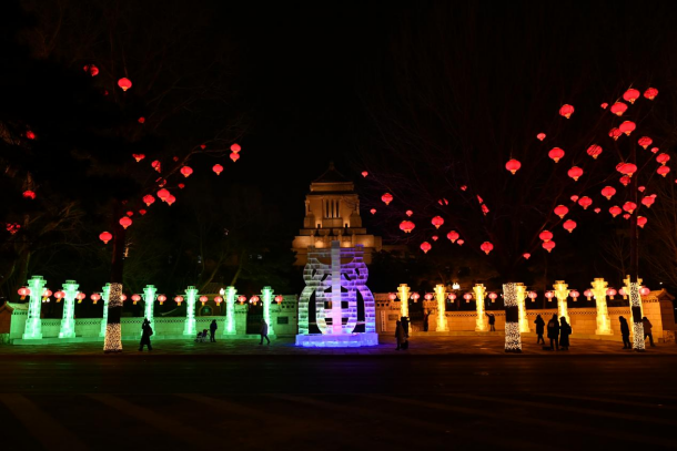 ★市民王先生说:“这‘春’字冰雕太有年味了,灯光一亮跟琉璃似的!‘春’字本身就透着春节的喜庆劲儿,还巧妙融合了‘长春’的‘春’,设计得真用心!”