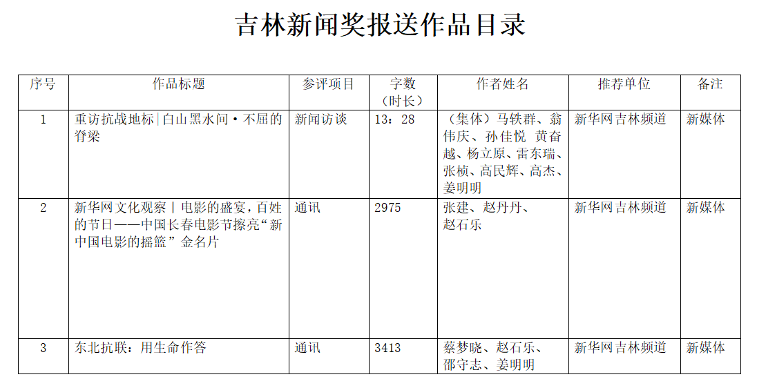 新华网吉林频道自今日起,在新华网吉林频道网站公示第35届吉林新闻奖参评作品,欢迎监督、评议。社会各界对推荐作品如有疑义或问题,可通过电话、邮箱发表评议、举报意见。电话:0431—88463077。邮箱:annakenny@sina.com。