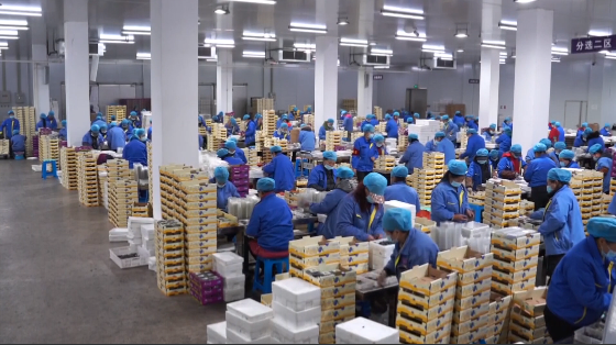 在通化禾韵现代农业股份有限公司的蓝莓收储中心内,农户们正全面投入蓝莓的初加工生产作业,大家正在对蓝莓果实进行分级测选,这批500吨的蓝莓订单将发往天津的一家食品企业。挑选现场,工人们采取人工加机械的组合式作业,挑选出符合订单要求的蓝莓等级。