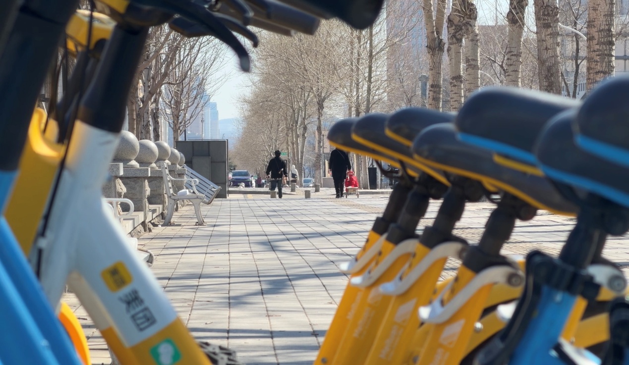 "在通化市,外卖骑手电动自行车的尾部贴上了带编号的“一车一码”高反光标识。"