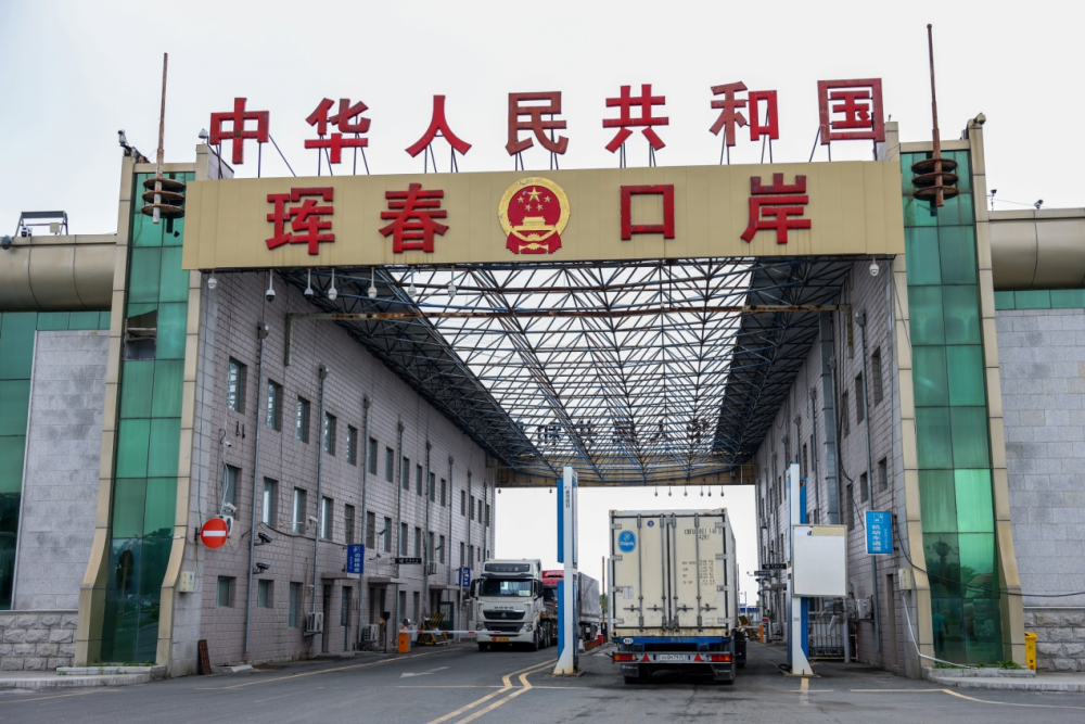 货车在珲春公路口岸进行通关。新华社记者 颜麟蕴 摄