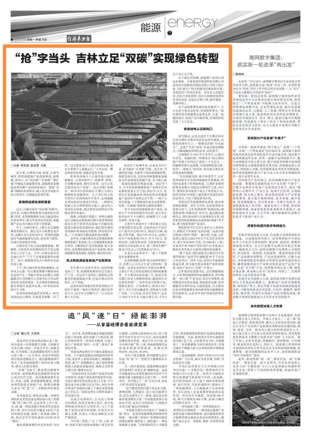 近年来,吉林省白城、松原、辽源等城市,抓住新能源产业的新赛道、新机遇、新风口,从“风沙城”“石油城”“煤矿城”中崛起为新能源发电、新能源装备制造业和零碳产业的绿色城市。借助“双碳”战略的有利势头,融入东北全面振兴的大背景中,实现绿色转型升级。