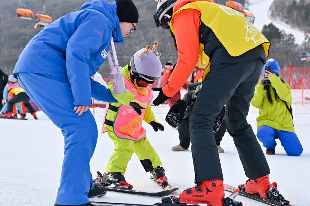 “我7年前开始教滑雪,那时候很多人只是图个新鲜,现在学习滑雪、爱上滑雪的人太多了。”耿石磷说,“小砂糖橘”也爱上了滑雪。