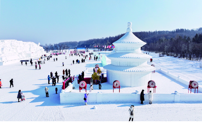 那么,如何将如此优厚的资源优势转化为产业优势?景区探索以建设精品特色文旅项目破题,2023年12月末,净月雪世界全面开放,占地10万平方米的雪世界用雪量超6万立方米,这座集“雪雕观赏、娱乐互动、户外体验、科普研学”于一体的冬季特色冰雪体验地,将“冰雪+体育”“冰雪+文化”“冰雪+科技”有机融合。净月雪世界既是城市冰雪文化交流体验中心,也成为各地游客在冬季感受森林冰雪文化、体验冰雪乐趣的首选之地。