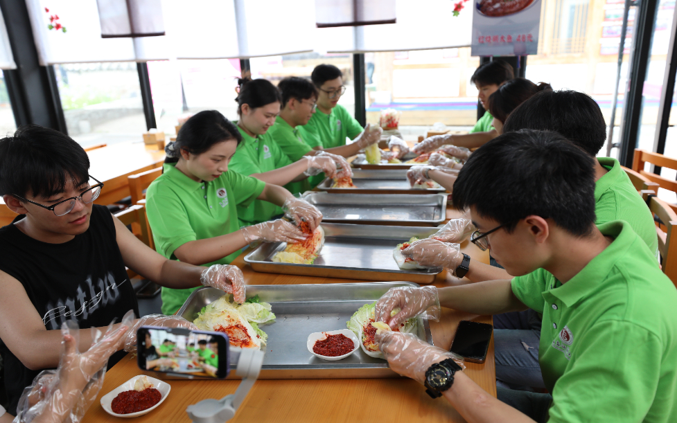 实践团驻足百年朝鲜族老宅、穿梭在金达莱民俗村,在地窖辣白菜厂参观和制作辣白菜,体验朝鲜族风土民俗。在北兴村四组农户的大院里,实践团队“送文艺到乡村”与当地村民共聚一堂,用歌声与舞蹈架起民族文化交流的桥梁。