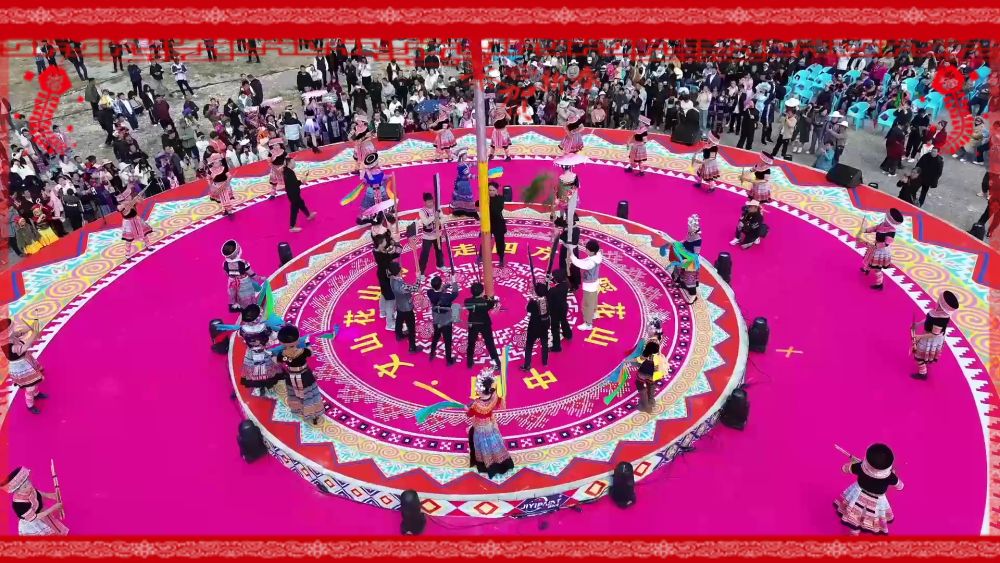 春节期间,苗族群众会举办踩花山活动,这是苗族群众千百年来代代相传昭示后人团结和睦、友善往来的活动。在云南文山壮族苗族自治州文山市,苗族群众身着盛装汇集到广场,绕广场中央的花杆跳舞,传递节日的喜悦。