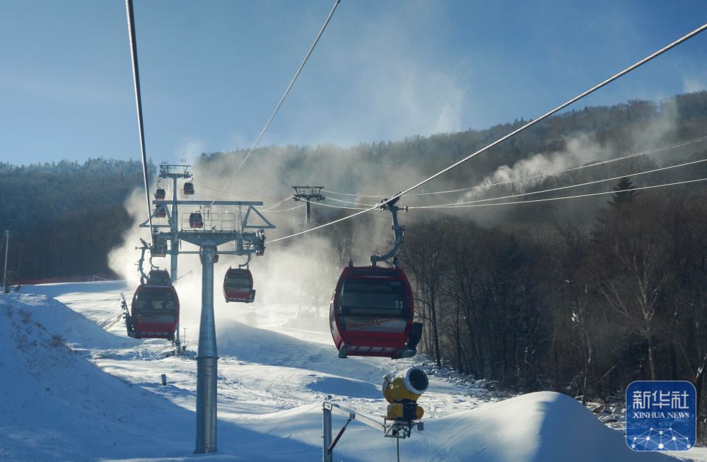 ↑ 这是12月2日在吉林市北大湖滑雪度假区拍摄的由北京起重运输机械设计研究院和徐州天马索道缆车设备有限公司共同研发生产的缆车。据介绍,北大湖滑雪度假区的缆车国产化达90%以上。