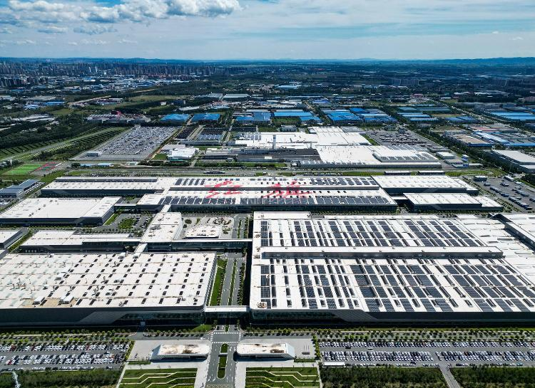 走进中国一汽红旗繁荣厂区,工业机器人手臂升降旋转,自动导航运输车往来穿梭,智能控制屏幕上数字闪烁,在自动化机械与专业人工的配合下,最快每52秒就有一辆新能源汽车下线,尽显“中国智造”的硬核实力。